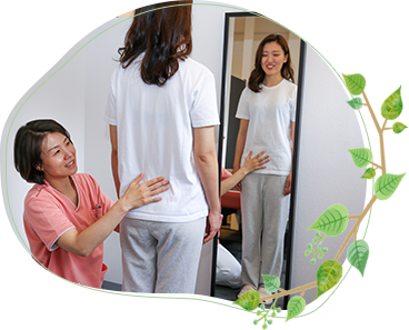 出産による骨盤の開き・ゆがみや、 下腹部のたるみ、猫背、肩・腰の つらさにアプローチ。 産後に気になる骨盤ケアを行います。