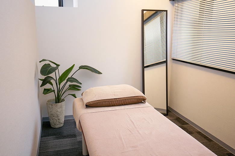 女性オーナーが担当させていただくので、男性の施術者が苦手・・・という方もご安心ください。店内は広々とした空間。全身の歪みや状態を見ることができる大きな鏡も完備しております。ご予約優先制ですが、当日のご来店も承ります。