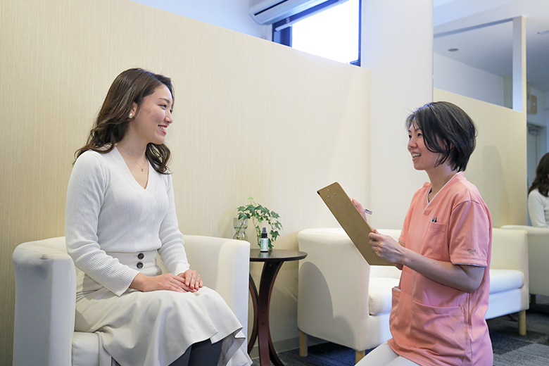 お客様のお悩みにアプローチできるよう、ヒアリングには力を入れております。今のお身体の状態を把握し、どこがお悩みの原因になっているかを洗い出し、直接アプローチをかけていきます。お客様のお悩みに合わせた施術を行います。